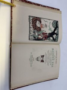 45. [BARBIER (Georges)]. MUSSET (Alfred de). On de badine pas avec l'amour. Comédie en trois actes. ParisG. Crès, 1920, in-8, demi-maroquin havane clair à coins, dos lisse orné, tête dorée, couverture et dos conservés (Yseux). Orné de compositions décoratives de Georges Barbier et d'un frontispice en couleurs. 1/30 exemplaires sur Vieux Japon. Dos passé.