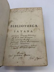 66- (CATALOGUE de BIBLIOTHEQUE). [MARTIN (Gabriel)]. Bibliotheca Fayana, [seu Catalogus librorum …