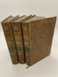 68- CERVANTES Y SAAVEDRA (Miguel de). Don Quichotte de la Manche, traduit de l'espagnol par Florian ; ouvrage posthume. Paris, Imprimerie de P. Didot aîné, chez Déterville, an VII (1799), 3 vol. in-8, veau fauve raciné, dos lisses ornés, tranches jaunes (reliure de l'époque). 24 planches hors texte de Lefebvre et Lebarbier gravées par Masquelier, Coiny, Halbou, Godefroy, Gaucher et Dambrun. Coins abîmés.