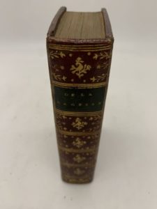71- CHARRON (Pierre). De la Sagesse, trois livres. Suivant la vraye copie de Bourdeaux. Leyde, Jean Elzévir, s.d. (1659), in-16, maroquin vieux-rouge, dos lisse orné, encadrement de triple filet doré sur les plats, simple filet doré sur les coupes, tranches dorées, gardes de papier marine (rel. du XVIIIe siècle). Un portrait qui ne figure pas dans toutes les éditions. Très bel exemplaire. Ex-libris au chiffre EL.
