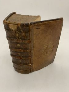 86- CICÉRON . Rhetoricorum ad Herennium libri quatuor, M. T. Ciceronis de Inventione libri duo. Omnia ad optima quaeque, eaque vetusta exemplaria, praecipue Victorii ac Pauli Manutii castigata. Lyon, Antoine Gryphe, 1585, in-16, veau fauve, dos à nerfs, encadrement de simple filet doré sur les plats, motif de lauriers dorés au centre des plats (reliure de l'époque). Petite édition collective qui réunit tous les ouvrages de Cicéron relatifs à l'art oratoire (cf. infra). Relié à la suite : M. Tullii Ciceronis Rhetoricorum posterior tomus (...). Accessit hac postrema editione index locupletissimus. Lyon, Gryphe, 1585. Regroupe les autres oeuvres oratoires de Cicéron : De Oratore ad Quintum fratrem ; Brutus ; Orator ; Topica ; Oratoriae partitiones. Manque de cuir en coiffe supérieure. Ex-libris manuscrit Letrosne ou Letronne, daté de 1808.