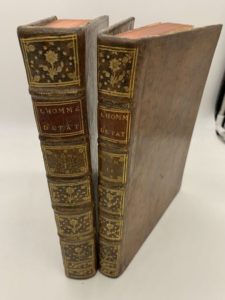 100- DONATO (Nicolo). L' Homme d'Etat, ouvrage traduit de l'Italien en François, avec un grand nombre d'additions considérables, extraites des auteurs les plus célèbres qui ont écrit sur les matières politiques. Liège, Clément Plomteux, 1767, 2 vol. in-4, veau fauve marbré, dos à nerfs orné, tranches rouges (reliure de l'époque). Première traduction française, par Jean-Baptiste-René Robinet, de L'Uomo di governo, qui parut d'abord à l'adresse de Vérone, en 1753. Bon exemplaire. Coiffes restaurées.