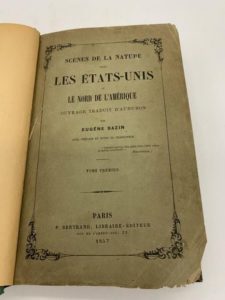 117- (ETATS-UNIS). AUDUBON (John-James). Scènes de la nature dans les États-Unis et le nord de l'Amérique. Ouvrage traduit par Eugène Bazin. Avec préface et notes du traducteur. Paris, P. Bertrand, 1857, 2 vol. in-8, [toile Bradel verte, couvertures imprimées conservées (rel. de la fin du XIXe s.). L'ouvrage se compose d'une suite de notices concernant essentiellement les oiseaux de l'Amérique du Nord.