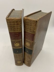 120- EULER (Léonard). Lettres à une princesse d'Allemagne, sur divers sujets de physique et de philosophie. Nouvelle édition, conforme à l'édition originale de l'Académie des Sciences de St-Pétersbourg, revue et augmentée de diverses notes, par J.-B. Labey, et précédée de l'éloge d'Euler par de Condorcet. Paris, Vve Courcier, Bachelier, 1812, 2 vol. in-8, basane fauve marbré, dos lisse orné, tranches marbrées (rel. de l'époque). Portrait et 9 planches repliées. Coins usés. Cachet Pension Delafosse - Suresnes.