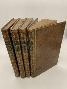 151- LA BORDE (Jean-Benjamin de). Choix de chansons mises en musique par M. de La Borde, premier valet-de-chambre ordinaire du Roi, gouverneur du Louvre. Ornées d'estampes par J. M. Moreau, dédiées à Madame la Dauphine. Gravées par Moria et Mlle Vendôme. Paris, Lormel, 1773, 4 vol. grands in-8, veau fauve marbré, dos lisses ornés, encadrement de triple filet doré sur les plats, tranches dorées (reliure de l'époque). Un des plus beaux livres illustrés du XVIIIe siècle. Edition originale de ce très beau recueil de 100 chansons, avec texte et musique notée dans un encadrement de double filet noir, chacune précédée par une remarquable estampe d'après Moreau le Jeune (pour le premier volume), Le Bouteux, Le Barbier et Saint-Quentin (pour les autres). Notre exemplaire est complet de toutes ses parties, y compris le portrait-frontispice de La Borde, qui ne fait pas partie à proprement parler de l'édition, et peut faire défaut. Ex-libris de A. Grandsire, pharmacien de Langres et collaborateur du Bulletin du bibliophile. Bel exemplaire.