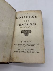 205- [PERRAULT (Pierre)]. De l'Origine des fontaines. Paris, Jean de La Caille, 1678, in-12, …