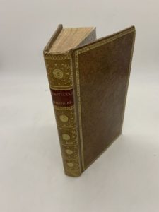 229- RUGGIERI (Claude-Fortuné). Pyrotechnie militaire, ou Traité complet des feux de guerre et des bouches à feu, contenant l'origine de la pyrotechnie militaire, les principes chimiques et mécaniques pour composer, préparer et lancer les machines incendiaires à l'usage des arsenaux de terre et de mer. Paris, chez l'auteur, Magimel, Patris, Barba, 1812, in-8, veau brun marbré, dos lisse orné, dentelle d'encadrement sur les plats, tranches jaunes mouchetées de rouge (reliure de l'époque). Édition originale rare, ornée de 8 planches repliées. Joint 3 feuillets manuscrits donnant des recettes pour fabriquer des feux d'artifice Bel exemplaire provenant de la bibliothèque de l'auteur lui même, avec son ex-libris manuscrit sur la page de titre.