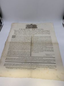 234- (SAVOIE). [Ordonnance de Charles-Emmanuel III]. Chambéry, Marc-François Gorrin, s.d. …