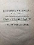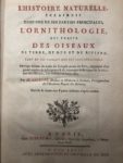 SALERNE. Histoire naturelle, éclaircie dans une de ses parties principales l'ornithologie, qui traite des oiseaux de terre, de mer et de rivière. Paris, De Bure Père, 1767. In-4, veau marbré, dos orné avec armoiries en queue, pièces rouges, tranches rouges (Reliure de l'époque). Frontispice de Martinet et 30 planches dessinées d'après nature et gravées par Martinet. Exemplaire aux armes indéterminées au dos. Mors du plat inférieur fendu.