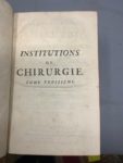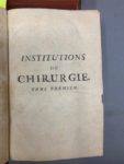 [Médecine] HEISTER (Laurent) INSTITUTIONS DE CHIRURGIE, où l’on traite dans un ordre clair et nouveau de tout ce qui a rapport à cet art. Niel, 1770, Avignon. 2 volumes in-4°, basane marbrée, dos à nerfs orné (reliure de l’époque).