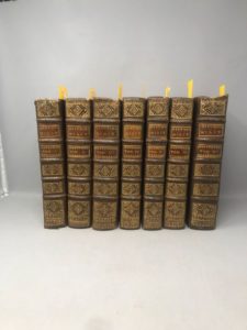 QUINCY. Histoire militaire du royaume de Louis le Grand, roi de France. Paris, Mariette, Delespine, Coignard fils, 1726. 7 volumes in-4, veau brun, dos orné, tranches fauve, tranches mouchetées rouges (Reliure de l'époque). Portrait de Louis XIV, 48 plans, cartes et vues, et 61 tableaux dépliants ordre de bataille ou force des garnisons. Le tome VII comporte une seconde partie, avec un titre particulier : Maximes et instructions sur l'art militaire, même éditeur, même date. Les diverses collations ne donnent pas toutes le même nombre de planches et de tableaux.