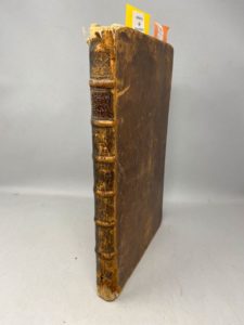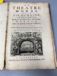 VAENIUS. Le Théâtre moral de la vie humaine représenté en plus de 100 tableaux divers, tirez du poète Horace. Bruxelles, François Feppens, 1678. In-folio, veau brun, dos orné, tranches mouchetées de rouge (Reliure de l’époque). Portrait de l’auteur et 103 planches. Deux feuillets très roussis. Manque au bas de la planche dépliante et du tableau de Cebes (10 cm). Reliure très usagée, manques au dos et aux coins.