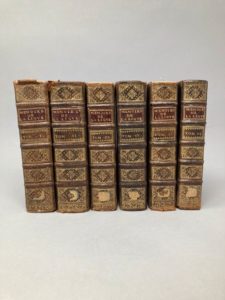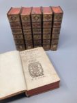 GOULARD, Simon 1543-1628, Le premier recueil, contenant les choses les plus mémorables advenues sous La Ligue, tant en France, Angleterre, qu'autres lieux. 1590, 6 volumes, In-12 Reliure plein veau brun, dos à nerfs et caissons dorés ornés, tranches rouges Pour l'ensemble : coiffes arasées, mors fendus, nerfs abimés Ensemble non collationné