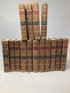DIDEROT Denis et NAIGEON Jacques-André, Oeuvres, publiées sur les manuscrits de l'auteur, Paris, Deterville, An-VIII (1799-1800), 15 tomes en 15 volumes, In-12 Frontispice illustré d'un portrait en médaillon de Diderot d'après Jean-Baptiste Geuze, comprenant 8 planches scientifiques dépliantes ainsi que le système figuré des connaissances humaines, dépliant Reliure veau plein, dos à caissons dorés polychromes, les plats ornés d'un double filets dorés au petit fer Pour l'ensemble : Coiffes arasées, certains dos accidentés, mors fendus et plats usés, quelques piqures Ensemble non collationné