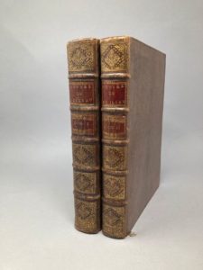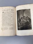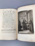 BOILEAU DESPRÉAUX Nicolas, Oeuvres, avec des éclaircissements historiques, donnés par lui-même, Genève, Fabri et Barrillot, 1716, 2 volumes, In-4 Belle gravure en frontispice présentant l'auteur d'après H. Rigaud, suivi d'une gravure hors texte du Duc d'Orléans d'après Jean-Baptiste Santerre, accompagnant la lettre de l'éditeur au Régent du Royaume. Illustré de 7 gravures hors texte; Reliure plein veau brun jaspé, dos à nerfs et caissons dorés richement ornés, dentelle intérieure dorée au petit fer, tranches rouges Pour l'ensemble : Coiffes légèrement arasées, mors et plats usés, traces d'humidité Non collationné