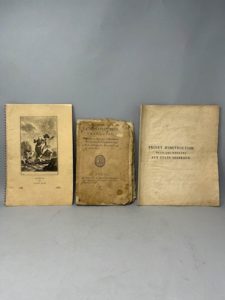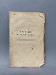 RÉVOLUTION FRANÇAISE. — Ensemble 4 brochures. – La Constitution française, présentée au Roi par l’Assemblée nationale, le 3 septembre 1791. Paris, De l’Imprimerie de Baudouin, 1791. In-8 de 42 pages, cousu d’un fil. Taches et salissures, angle supérieur des feuillets abimé. – Projet d’instruction pour les Députés des Bailliages réunis de Provins & de Montereau, aux États Généraux... S.l.n.d. [1789]. In-4 de 17 pages, cousu d’un fil. – Opinion de M. Malouet, prononcée dans la séance du samedi 20 février, sur le projet de décret proposé par le comité de constitution, relativement au rétablissement de l’ordre public dans le royaume. In-8 de 13 pages, dérelié. On joint une plaquette sur la Commémoration du cent-cinquantenaire de la Révolution française (1939).