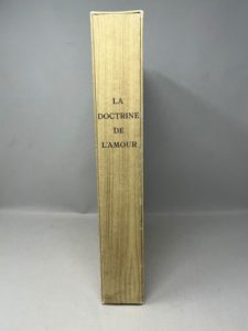 NOUVEAU (Germain). La Doctrine de l’amour, suivie du Dernier madrigal. Le Livre contemporain, les bibliophiles franco-suisses, 1966. In-folio, en feuilles, chemise, étui. Eaux-fortes par Henri Landier. Tirage à 189 exemplaires.