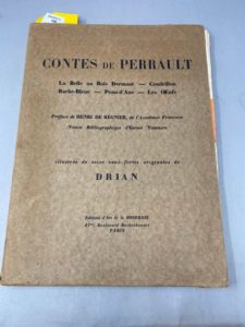 PERRAULT Charles, contes de Perrault, préface de Henri Régnier, de l'Académie Française, Notice Bibliographiue d'Ernest Tisserand, In-folio, Editions de la Roseraie, Paris, 1922, In-folio Illustrés de 16 eaux-fortes originales de DRIAN justifié exemplaire 148 En feuillets assemblés dans une chemise brune, bel état, quelques traces, non collationné 100/150
