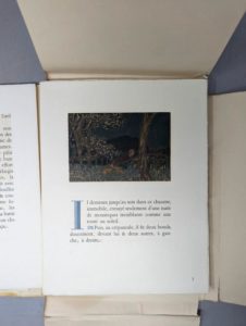 JAMMES Francis, LA FRESNAYE, Le Roman du Lièvre. Paris, Emile Paul frères, 1929 ; 1 volume en veuillets sous emboitage in-folio Tirage à 152 exemplaires, ici numéroté 54. 12 illustrations en couleurs de Roger de La Fresnaye. Manque le dessin original de l'illustrateur et la suite de bois gravés. Intérieur très frais, emboitage en état d'usage