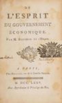 BOESNIER DE L'ORME (Paul). De l'esprit du gouvernement économique. Paris, Delalain, 1775. In-8, …