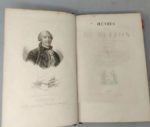 BUFFON Georges Louis Leclerc de et SONNINI Charles Nicolas Sigisbert, Histoire Naturelle, générale et particulière, Paris, F. Dufart, An VIII (1799-1800), 127 volumes, In-12 Belle gravure du portrait de l'auteur en frontispice d'après Jean-Baptiste-Michel Dupréel et 2 gravures d'après Blanchard. Illustré de nombreuses gravures et cartes monochromes. Reliure plein veau blond, dos à caissons dorés et ornés, pièce de titre et de tomaison en marocain rouge et vert, frise dorée sur chaque plat Pour l'ensemble : assez bon état général, traces d'usures, dos parfois légèrement accidenté Théorie de la terre et de la nature 4 cartes dépliantes ; Minéraux 22 planches et 2 cartes dépliantes ; Animaux 10 planches ; Histoire naturelle de l'Homme 10 planches ; Les Quadrupèdes 255 planches et 1 carte dépliante ; Les Singes 79 planches ; Les oiseaux 182 planches ; Les poissons 84 planches ; Les Cétacées 54 planches ; Mollusques 71 planches ; Les reptiles 85 planches ; Les insectes 111 planches et 7 tableaux dépliants ; Les plantes 132 planches