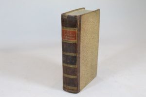 [HOLBACH (baron d')]. La Morale universelle. Ou les devoirs de l'homme fondés sur sa nature. Amsterdam, Marc-Michel Rey, 1776. 3 tomes en un volume in-8, demi-basane marbrée, dos lisse orné, pièce de titre orangée (Reliure de l'époque). INED, n°2287. Véritable édition originale, conforme à la description donnée par Vercruysse sous la référence A4. Important texte de Holbach. L'auteur y dénonce les dangers du luxe pour les États et pour les individus, et condamne la mendicité ; pour lui, le peuple doit travailler : La terre est le fondement physique & moral de toute Société. [...] Le commerce n'est vraiment utile que lorsqu'il favorise l'agriculture, fait fleurir les manufactures, produit la population ; dès qu'il nuit à ces objets essentiels, son utilité disparoît : il devient une manie funeste quand il ne sert qu'à faire éclore des guerres sanglantes & continuelles ; il est un dangereux poison quand il n'a pour but que d'alimenter le luxe & la vanité des hommes (t. II, p. 245). Exemplaire bien complet du carton consacré à l'éducation dans le tome III. Des rousseurs uniformes, petite mouillure marginale à quelques feuillets. Restauration à la coiffe supérieure.
