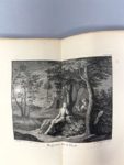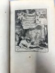 LONGUS. Daphnis et Chloé. Paris, Quillau,1718. Petit in-8, maroquin rouge, triple filet autour des plats et des caissons du dos, pièce verte, roulette intérieure, tranches dorées sur marbrure, doublure et gardes de papier dominoté fleuri de couleur vive, étui (Reliure de l’époque). Frontispice par Coypel et 28 figures hors texte de Philippe d’Orléans gravées par Audran, et la figure des petits pieds ajoutée à l’époque. De la bibliothèque Georges Degryse. Cassure restaurée au caisson inférieur.