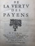 LA MOTHE LE VAYER (François de). De la vertu des Payens. A Paris, chez François Targa, 1642, …