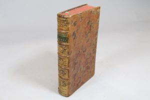 ROUILLE D'ORFEUIL (Augustin). L'Alambic moral, ou Analyse raisonnée de tout ce qui a rapport à l'homme. Par l'Ami des François. À Maroc [Paris], 1773. In-8, veau marbré, dos orné, pièce de titre verte, tranches rouges (Reliure de l'époque). Goldsmiths, n°10955. - INED, n°3937. Édition originale de ce dictionnaire très varié et fort intéressant, contenant des théories sur l'excellence de la population et de l'agriculture, sur la nécessité de modérer l'industrie, sur les dangers du luxe, des colonies et de la corruption des mœurs, etc. Rouillé d'Orfeuil, alias l'Ami des Français, était un ancien colonel d'infanterie. Le baron Grimm, dans sa Correspondance, l'a décrit comme un rêveur politique. Il existe 2 éditions sous la même date, avec une collation identique, sans que l'on puisse déterminer la primeur de l'une sur l'autre : l'une d'elles (qui n'est pas la nôtre) se distingue en ce qu'elle contient au verso du titre une note imprimée priant le lecteur de se référer à un feuillet d'errata, et une autre note en bas du feuillet Mm4. Dans les deux cas, la collation est identique et le texte n'est pas corrigé, présentant les mêmes coquilles. Sans le feuillet d'errata, quelques rousseurs.