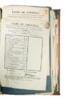 Jean-François CHAMPOLLION (1790-1832) Recueil de 69 L.A.S. et 1 L.S. à son frère, 16 manuscrits autographes, et 65 documents divers ; titré au dos Champollion-le-Jeune au Lycée de Grenoble, 1801-1815 ; montés en un fort volume in-fol., rel. percaline brune, pièce de titre au dos. Important recueil des lettres du jeune Champollion à son frère aîné, et précieux témoignage sur sa scolarité à Figeac et Grenoble. Les lettres, adressées à son frère Champollion-Figeac, alors négociant à Grenoble, sont généralement assez brèves (1 page in-8, in-12 ou in-4) et portent l'adresse ; peu sont datées. La première lettre est écrite de Figeac le 2 janvier 1801, et signée « Cadet Champollion » : « Mon tres cher frere Apres une si longue attente je suis arrivé au comble de mes desirs en recevant votre chere lettre. Le plesir a ette plus grand d'apprendre que vous jouissiez d'une parfaite santé je vous en soete la continuation comme à moy meme pourqant à la miene elle est for bonne Dieu mercy ainsi que celle du papa et de la maman et de nos cheres soeurs qui vous anbrassent de tous leur coeurs. Je vous remercy des avis que vous me donnez et je fairai tout mon possible chaque jour pour les mettres en pratiques vous me demandait un exantillion de mon savoir faire. Vous le trouverez ici joints. Je vous priée desquser mon petit esprit qui est un peu volage jespere que vos leçons le corigeront. Je vous prie d'avoir la bonté d'assurer de mes respects tous nos chers parents et dans de les ambrasser pour moi »... Il ajoute (avec la traduction en latin) : « Je suis aimé de Dieu lorsque je donne mon bien aux pauvres. Je serai aimé d'Antoine lorsque j'étudierai bien mes leçons. Les hommes qui cultivent les arts favorisent les sciences [...] un ecolier sage ne fait injure à personne »... Les autres sont écrites de Grenoble, peu sont datées ; sur 4 lettres, la signature est accompagnée de signes maçonniques. Champollion demande à son frère des livres ou revues et évoque ses lectures (les Synonymes français, l'Histoire politique et philosophique des deux Indes de l'abbé Raynal, l'Odyssée, le Magazin encyclopédique, des volumes de la Bibliothèque orientale, Condillac, Laharpe, la Mythologie des peuples du Nord le 17 février 1807, des mémoires de l'Académie des inscriptions, un Anacréon en grec, le Mécanisme des langues, ) des raisins de Smyrne, des bretelles, des lunettes, une mappemonde, etc. Il le prie de « faire copier des urnes des sarcophages des vases »... Il raconte qu'il étudie l'arabe et l'hébreu, s'intéresse à « l'histoire naturelle des Livres Saints », dresse « une petite liste des gouverneurs de l'Égypte », s'adonne à la poésie latine, au dessin ou à l'entomologie (il envoie ainsi à son frère « 97 insectes préparés »)... Il attend les visites de son frère, le prie de venir le faire sortir, raconte la colère d'un surveillant, commente ses résultats scolaires, compte son argent de poche... Il se plaint aussi de persécutions, et d'avoir été séparé d'un ami [Wangehis] « que j'ai aimé de tout mon coeur »... Il espère quitter le lycée pour un « collège où l'on aprend le grec, l'hébreu, l'arabe, le chaldéen et le syriaque »... Lettre de voeux en latin, le 1er janvier 1805. Une lettre, signée comme président-trésorier de l'Académie des Muses (cosignée par 5 camarades), nomme son frère membre correspondant de cette académie... Les manuscrits, envoyés par Champollion à son frère, sont : - Conaxa, conte en vers (5 p. in-4) : « Un commerçant au déclin de son âge »... ; - Ode 3 imitée d'Anacréon : « Aux forges de Lemnos le bon Vulcain un jour »... (1 p. in-4) ; - Discours du vieil Horace, en vers, d'après Tite-Live : « Peuple, le verras-ti ce héros triomphant »... ; - Ode en grand vers : « Le fracas des cités pour plusieurs a des charmes » (1 p. in-4) ; - Plaisirs de la campagne, « ode petits vers » : « Dans une aimable solitude »... (1 et ½ p. in-4) ; - une ode en 38 vers numérotés : « Je chante des héros la victoire éclatante »... (1 et ¼ p. in-4) ; - un texte sur Hésiode (4 p. in-4) ; - un texte sur les devoirs à rendre aux morts (4 p. in-4) ; - une dissertation sur Homère (2 p. in-4) ; un Canon chronologique jusqu'à J.C. (1 p. in-4) ; - Eleonor, roman en 6 chapitres (7 p. in-fol.) ; -un Chant 1er : « A peine la matinale aurore avait ouvert » (4 p, in-8) ; - Thèmes, 6 textes de thèmes sur les orateurs, Démosthène, Isocrate, Athènes (2 p. in-fol., avec dessin de livre ouvert) ; - un Cahier de déclinaisons allemandes, 1804 (6 p. in-8) ; - Champollion on AEgypt under the Pharaons, copie autographe par Champollion d'un article de la Monthly Review en avril 1816 (16 p. in-4)... Copie autographe par Champollion de la lettre de FOURIER, préfet de l'Isère, à Fontanes, 17 février 1812, concernant la chaire d'histoire vacante après le décès de Dubois-Fontanelle et demandant la nomination à cette chaire de Jean-François Champollion, dont il vante les mérites (2 p. in-fol.). Extrait d'un ouvrage avec Alphabetum Syriacum, avec la signature de Champollion et le titre autographe Lecture du