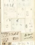 Jean-François CHAMPOLLION (1790-1832) Recueil de manuscrits autographes et de dessins hiéroglyphiques ; cahier grand in-8, rel. percaline rose. 130 petites fiches de dessins de hiéroglyphes ou de cartouches, collées sur 5 ff., à la mine de plomb (7 à l'encre), de tailles variées (de 6,5 x 4 ou 5 x 6 cm à 1 x 1 cm), certains avec référence ou légende : Karnak, obélisque de Louqsor... Plus une dizaine de vignettes gravées. Fragment ancien de Coran sur parchemin en écriture coufique. Un feuillet double in-4 d'une écriture non identifiée de syllabes en éthipien, d'abréviations arabes, et tableau d'alphabets hébreu, syriaque, arabe, samaréen et éthiopien. Poème autographe signé, À mon frère, Épitre (36 vers, 1 page et demie in-4) : « Dans ce jour si chéri des fils respectueux/D'un coeur reconnaissant daigne écouter les voeux »... Liste non autographe Numi Nomorum Ægyptiorum (1 page et demie in-4). Trois fiches autographes (in-12), donr une avec la lettre A en sanscrit, en tamoul, en égyptien et en persan. Manuscrit autographe sur les mers, les caps et les mers intérieures (2 pages grand in-8, avec quelques ratures et corrections). « La Méditerranée communique avec l'Océan par le détroit de Gibraltar. La Méditerranée compte outre cela cinq bassins secondaires savoir : La Mer de Marmara, qui communique avec la Méditerranée par le détroit des Dardanelles »... Manuscrit autographe sur l'Amérique, les langues, l'écriture et les hiéroglyphes (4 pages petit in-4, quelques ratures et corrections) : « À l'extrémité nord de l'Amérique septentrionale errent les Esquimaux, mongols polaires dont la langue se compose de mots d'une étonnant longueur »... Puis il évoque les Hurons, les Sioux, les Atzèques (sic), les Araucans, etc. « On a d'abord commencé à figurer grossièrement les objets dont on voulait conserver le souvenir ; dans ce degré l'écriture se confond avec la peinture proprement dite [...] Au second degré on figure les idées abstraites par des emblèmes puisés dans l'ordre physique ; souvent même on ne retrace une pensée qu'en figurant une des parties constitutives de l'image qui la représentait. Les Hiéroglyphes des anciens Egyptiens présentent un modèle très perfectionné de cette seconde espèce d'écriture »... Fragment de manuscrit ancien en hébreu sur parchemin.