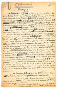 Léon DAUDET (1867-1942) Manuscrit autographe signé, L'Entremetteuse, roman contemporain, 1921 ; 187 pages in-fol. Manuscrit complet de ce roman qui fit scandale. Publié chez Flammarion en 1921, ce roman sur une maquerelle, qui sera dédié à Marcel Proust, fit scandale et fut violemment attaqué par la presse catholique ; Daudet décida de le supprimer de son oeuvre. Il fut donc retiré du commerce, mis au pilon et jamais réédité. Le manuscrit, complet du Prologue et des dix chapitres, présente des ratures et corrections. On joint 14 ff. de plans et esquisses.