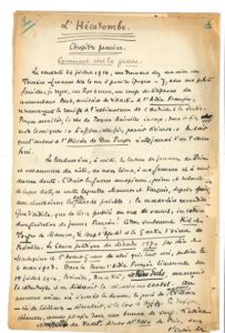 Léon DAUDET (1867-1942) Manuscrit autographe signé, Sylla et son destin, 1922 ; 211 pages in-fol. (la dernière déchirée). Biographie du dictateur romain Sylla, publiée chez Flammarion en 1922, en neuf chapitres et un Épilogue. Le manuscrit, complet, est signé en fin et daté du 7 septembre 1922 ; il présente des ratures et corrections.