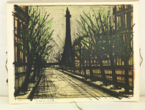 Bernard BUFFET — « Paris ». — Planche II — Planche au format in plano tirée de l’ouvrage « Paris » édité en décembre 1962 par Alain C. Mazo et Cie et tiré à 150 exemplaires. — Lithographie sur vélin d’Arches tirée par Mourlot.