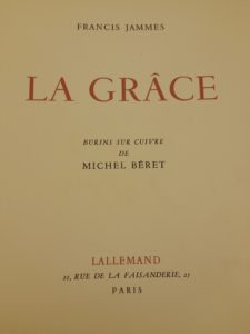 (Michel BÉRET). — JAMMES (Francis). — « La grâce ». — Lallemand, 1946, petit in folio en feuilles sous emboîtage d’édition couleurs.