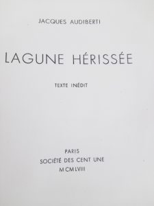 (CARZOU) — AUDIBERTI (Jacques). — « Lagune hérissée. — Texte inédit ». — Paris, société des cent une. 1958. Grand in-4 en feuilles sous chemise d’édition lithographiée.