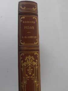 (GREUZE). — Edmond PILON. — « J. B Greuze. Peintre de la femme et de la jeune fille au XVIIIème siècle ». — Editions Piazza, 1912. — Grand in-4 relié demi maroquin à coins havane, dos à nerfs richement orné en long dans le bel esprit...