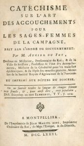 Catéchisme sur l'art des accouchements pour les sages-femmes de la campagne, fait sur ordre du gouvernement. Montpellier, Jean Martel aîné, 1776, in-12, XXIV-90-[4] p. Relié avec : TISSOT. Essai sur les maladies des gens du monde. Troisième édition originale fort augmentée. Lyon, Jean-Marie Bruyset, 1771, in-12, XXIV-356-[4] p. Ensemble un vol. in-12 en plein veau brun de l'époque, dos lisse orné (rel. usée, mors fendus, coins émoussés, coin supér. avant rongé). Amusante réunion. Pour frapper les esprits, Anne-Amable Augier du Fot n'hésite pas à développer une rhétorique violente qui vise à stigmatiser la vieille matrone, ignorante et superstitieuse, et à l'opposer à la sage-femme, jeune si possible, adroite et instruite des bases de l'art obstétrical. Samuel-Auguste Tissot, médecin suisse (1728-1797) a fait ses études de médecine à Montpellier, où il est reçu docteur en médecine en 1749. Il revient ensuite à Lausanne et se fait connaître par des livres de vulgarisation médicale, dont le fameux traité sur l'onanisme.