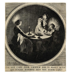 Jacques Callot, Donatus Antellensis Senator Florentinus Annum Agens LXXVIII. 1619. Acquaforte. mm 192x150. Lieure, 294. Con la firma in basso a sinistra. Da Orazione di Camillo Rinuccini in lode del Sig. Donato dell'Antella Senator Fiorentino,.., in Firenze nella stamperia di Zanobi Pignoni,1618. Ottima prova di questa rara incisione (R.R.R.) nell'unico stato, impressa su carta vergellata sottile priva di filigrana. Al verso nota manoscritta con la data "1690" di Pierre II Mariette (1634-1716) (Lugt, 1788-1790), e timbro dell'Albertina (Lugt, 5d) con la scritta « veräussert » impiegato per i doppioni. SI AGGIUNGE: Id., Le Bénédicité. La Sainte Famille à table. 1628 ca. Acquaforte. mm 193x170. Lieure, 595. Nella composizione in basso da sinistra a destra "Jac. Callot In. et fec. Nanceij". (2)