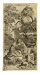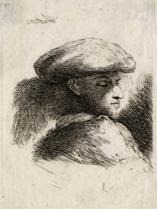 Giovanni Benedetto Castiglione (detto il Grechetto), Ubi Inletabilitas ibi Virtus (La Malinconia). 1645-1646. Acquaforte. mm 217x114. Foglio: mm 220x118. Bartsch, 26. Bellini (Castiglione), 15. Sulla pagina che fuoriesce dal libro a destra "G. BENED.TO / CAS. / in". Buona impressione nel IV e definitivo stato su carta vergellata priva di filigrana. In basso a sinistra parte di marchio di collezione. SI AGGIUNGE: Id., Testa di giovane volto a destra. 1650-1652. Acquaforte. mm 111x82. Foglio: mm 114x85. Bartsch, 35. Bellini (Castiglione), 26. In alto a sinistra "CASTILIONE". Dalla serie comunemente nominata Piccoli ritratti. Bella impressione nel II stato di 2 con ancora ben distinguibile la iniziale "C" della firma, su carta vergellata sottile priva di filigrana. (2)