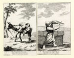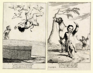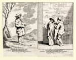 Giuseppe Maria Crespi (detto lo Spagnolo), Bertoldo, Bertoldino e Cacasenno. 1705-1715. Acquaforte. mm 224x150. Bartsch, XIX, 23-42. F. Varignana, in Giuseppe Maria Crespi 1665-1747, catalogo della mostra, Bologna 1990, pp. CI-CLV. Al margine inferiore a sinistra "Giuseppe Crespi (o Gios.) Crespi Inv." con il numero, al centro versi su tre righe, a destra tracce dell'abrasione della firma del Mattioli. Le tavole sono numerate in tre suite, da 1-6, 1-8 e 1-6. Alcune prove sono firmate con il nome del Mattioli anche se autore è Crespi. Mattioli realizzò nel 1736 una serie di copie in controparte con nuovi sfondi (Bartsch, XIX,103-122) per un'edizione in libro delle storie pubblicata da Lelio della Volpe. Serie completa delle venti tavole disegnate e incise da Giuseppe Maria Crespi e ispirate alla trilogia inerente i fatti di Bertoldo. Le fonti della fortunata raccolta trovano origine nel libretto di Giulio Cesare Croce Le Astutie Sottilissime di Bertoldo pubblicato nel 1606, al quale era seguito due anni dopo Le piacevoli e ridicole semplicità di Bertoldino Figliuolo dell'astuto et accorto Bertoldo ancora di mano del Croce, e nel 1620 La novella di Cacasenno figlio del semplice Bertoldino...nuovamente aggiunto al Bertoldino del Croce, opera del monaco olivetano Adriano Banchieri, a completare la trilogia. La critica non è a tuttoggi concorde nell'escludere Ludovico Mattioli dall'esecuzione dell'intaglio delle lastre. Bellissime prove stampate con bel contrasto su carta vergellata sottile con filigrana "lettere P.M. in cerchio singolo sormontato da trifoglio" visibile su sette fogli. (20)