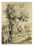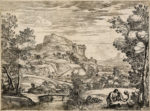 Giovanni Francesco Grimaldi, Paesaggio con giocatori di dadi / Paesaggio con due uomini su un dosso / Paesaggio con due pastori e due caproni in lotta. 1630-1680. Acquaforte. mm 250x330. Bartsch, XIX, 38. Bellini (Grimaldi), 35. Bellissima impressione nel I stato di 2 prima dei ritocchi in basso a sinistra e l'aggiunta al margine inferiore della scritta "An: Carac.". Carta vergellata spessa con filigrana "fiore di giglio in cerchio singolo". Al verso marchio di collezione impresso in nero "a.m.in cerchio singolo" (Collezione Masi, Bologna. Non su Lugt). / Acquaforte. mm 266x191. Bartsch, XIX, 12. Bellini (Grimaldi), 51. Ottima impressione nel I stato censito su carta vergellata priva di filigrana. / Acquaforte. mm 315x220. Foglio: mm 390x270. Bartsch, XIX, 14. Bellini (Grimaldi), 53. Ottima impressione con la firma dell'autore in basso al centro, su carta vergellata spessa con filigrana "fiore di giglio in cerchio singolo". In basso al verso nota inventariale "g.a 25" a penna e inchiostro nero. (3)