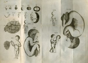 Abrégé de l'Embryologie sacrée, ou Traité des devoirs des Prêtres, des Médecins, des Chirurgiens et des Sages-Femmes envers les Enfans qui sont dans le sein de leurs meres. Par l'abbé Dinouart. Seconde édition considérablement augmentée, approuvée par l'Académie Royale de chirurgie, et avec des Figures en taille douce. Paris, Nyon, 1766, in-12, XXVII (I-VI, III-XXVII)-[1]-596 p., 3 planches h. t. dont 2 dépliantes, pleine basane brune de l'époque, dos à nerfs décoré (rel. usée et frottée, coiffes arasées, mors émoussés, bruniss. et mouill. claires). Ouvrage curieux, augmenté de l'abrégé donné en français par Dinouart d'après le traité de l'inquisiteur Cangiamila intitulé Embriologia sacra, Palerme 1745. Recherches sur l'opération césarienne par M. Simon. Du baptême des monstres. Moyens de salut aux enfants renfermés dans le sein de leurs mères. Possibilité de conférer le baptême à l'enfant retenu dans la matrice. Bénédiction des femmes encientes. Des Sages-femmes. Description de la chaise d'Heister, etc.