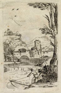 Pietro Testa, Pescatori sul Tevere. 1630-1631. Acquaforte. mm 122x80. Foglio: mm 133x88. Bellini (Testa), 6. Ottima prova di questa rara incisione, nell'unico stato noto, su carta vergellata sottile priva di filigrana. (1)