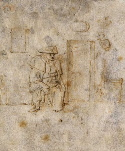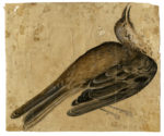 Autori vari, Lotto di sette disegni. XVII-XIX secolo. 1) Studio per uccello. Pennello e acquerello marrone e grigio, rialzi in bianco, su carta color nocciola. mm 197x236. 2) Figura seduta con mantello e tricorno. Penna e inchiostro bruno su carta vergellata sottile color avorio. mm 112x93. Applicato per due punti in alto in passepartout moderno. 3) Due mandriani e un bove. Penna e inchiostro bruno su carta sottile color avorio. mm 124x90. Applicato per due punti in alto in passepartout moderno. 4) Tobiolo e l'angelo. Penna e inchiostro nero, pennello e acquerello grigio. mm 285x225. 5) Salomé riceve la testa del Battista (recto). Studi di panneggio (verso). Matita nera su carta vergellata sottile color sabbia. mm 255x348. 6) Studio per figura femminile seduta. Matita nera e rari rialzi in bianco, carta vergellata sottile color nocciola con filigrana "colomba e lettere PGG". mm 430x295. 7) Bambina con cembalo. Tempera a colori su cartoncino. mm 150x130. (7)