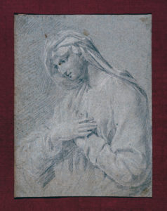 Scuola veneta degli inizi del XVIII secolo, Madonna annunciata. Matita nera con rialzi in bianco su carta cerulea. mm 237x176. Pubblicato in P. Consigli Valente (a cura di), Disegni antichi, Banca Emiliana, Le collezioni private parmensi, 1988, n. 284. Il disegno porta una tradizionale attribuzione a Francesco Londonio, noto soprattutto per disegni di paesaggio e scene pastorali. (1)