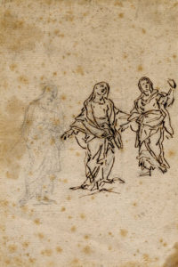 Scuola napoletana della prima metà del XVIII secolo, Tre studi di figure femminili. Penna e inchiostro bruno, matita di grafite, carta vergellata pesante color sabbia priva di filigrana. mm 208x140. (1)