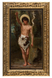 Anonimo della seconda metà del XIX secolo, San Giovannino. Bozzetto a olio su tela. cm 40x21. Maniera di Francesco Paolo Michetti. (1)