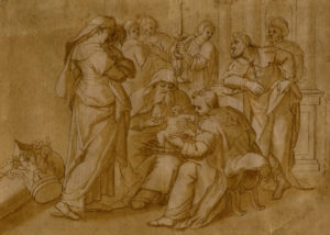 Maarten Vos, de [da], Circoncisione di san Giovanni. Penna e inchiostro bruno, pennello e acquerello marrone su carta vergellata preparata in color ocra e priva di filigrana. mm 215x305. (1)