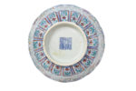 Arte cinese, Ciotola in porcellana Doucai. Dinastia Qing (1644-1912), XVIII secolo. Ciotola decorata internamente in blu con corona a otto pannelli, alternativamente riempiti da un frutto o da un fiore separati da uno stilizzato nodo pendente. Entro la corona un ottagono con motivo ispirato a piante e fiori palustri. Bordo leggermente lobato con linea blu all'interno. L'esterno in policromia è decorato da otto fiori in posizione simmetrica. Sulla base marchio Qianlong (1736-1795). Altezza: cm 7,5. Diametro: cm 17,5. Base: cm 7,5. (1)